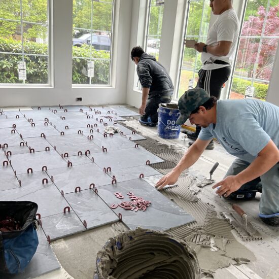 Corner Solutions Team Laying Tile In Residential Home
